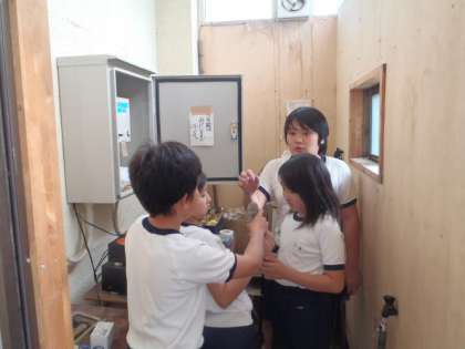 写真上 放送委員 校庭の放送室でも活動しました。