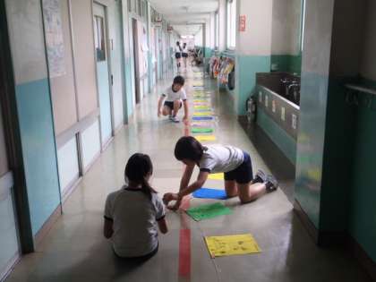 中 児童会 運動会の「夢の旗」を点検しました。