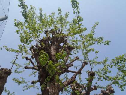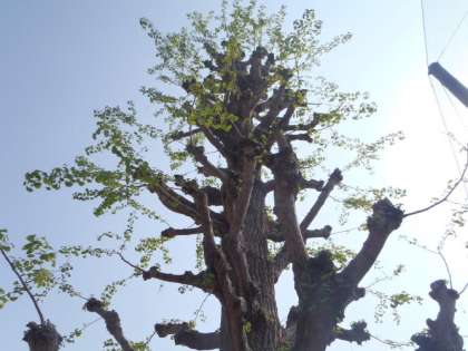 秋に大きく刈り込んだ銀杏の木。