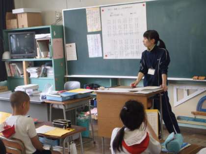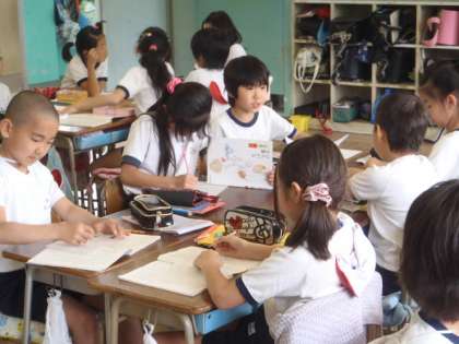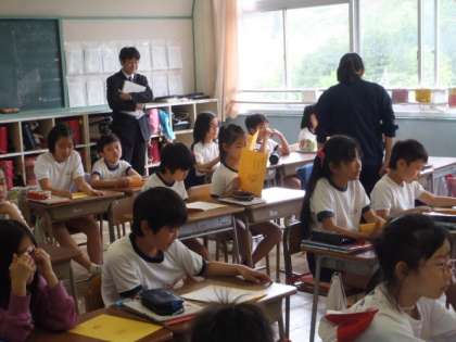 4年2組浅居学級の授業を、坂本校長と平田副校長とで参観しました。