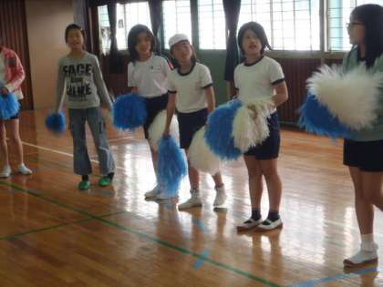 応援団は応援の練習を体育館で行いました。(写真中・下)