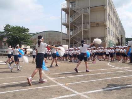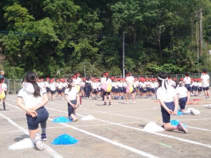 運動会を今週の日曜日に控え、全校練習が行われています。