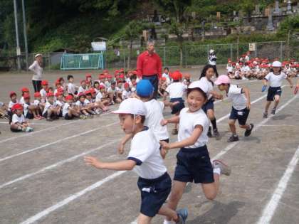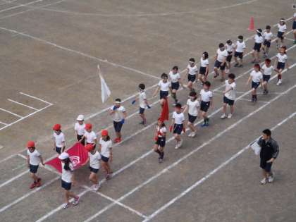 時間短縮のため、「入場行進を取りやめよう」と言う意見も職員会議で出ました。恩方音頭や全校競技、閉会式等の行進は取りやめ、入場行進は例年どおり行うことになりました。