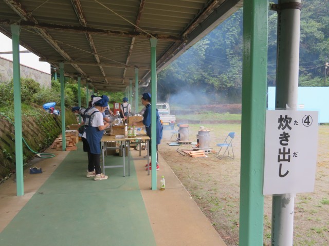 また、朝早くから女性防火協会の方々が炊き出しをしてくださいました。皆さんはアルファ化米と乾パンを自宅に持ち帰りました。