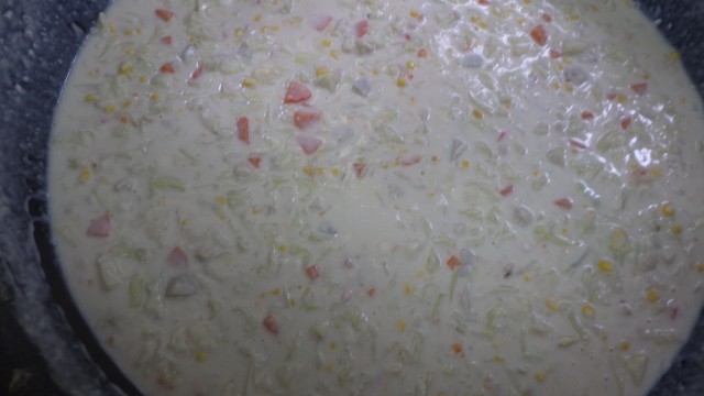 今日の給食では、クリームシチューの中に「さといも」を入れました。しっかり食べましょう!