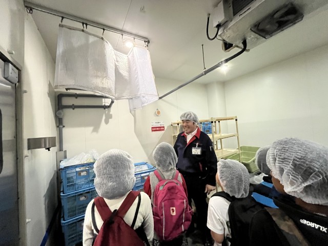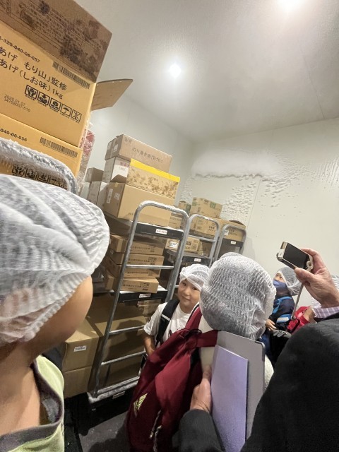 その他、冷蔵室や冷凍室の中にも入らせてもらいました。冷凍室は、マイナス20度と家庭用の冷凍庫と同じだそうです。大変寒かったです。