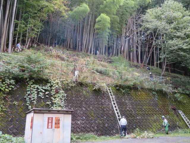 校舎裏は、ススキ等が刈り取られ、明るくすっきりとなりました。ありがとうございました。