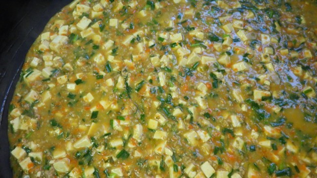 豆板醬は少なめに使用しているので、一般的なマーボー豆腐とは少し違いますが