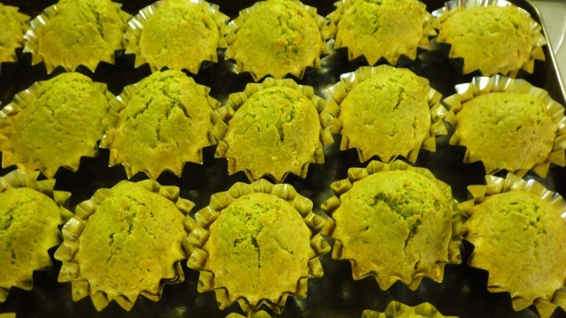 今日は、桑都カップケーキです。ほんのり緑色に焼き上げました。