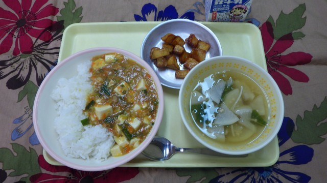 ごはん・マーボー豆腐・じゃがいもの甘辛揚げ・