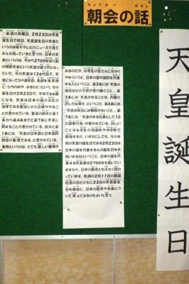 この日は、翌週の2月23日の天皇誕生日について校長先生からお話がありました。小学校では、児童に祝日の意義や内容、日本の伝統文化との関連などを教えます。祝日を大切にし、感謝の気持ちをもつように育ってほしいと思います。