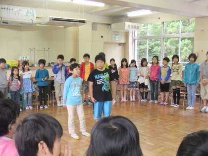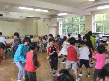 今日の児童集会は「なんでもバスケット」でした。全校児童が音楽室でとっても楽しそうに集会活動をしていました。