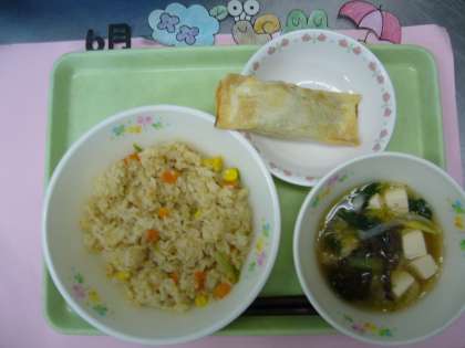 「ツナとレタスのチャーハン」「棒餃子」「小松菜と春雨のスープ」「牛乳」でした。