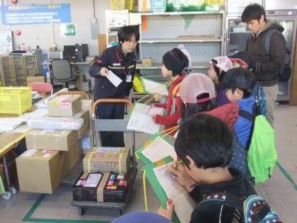 先日、2年生が恩方郵便局に見学に行きました。郵便局で2年生の8名の子供たちは熱心に見学をしていました。その様子を紹介します。