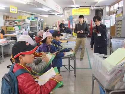 先日、2年生が恩方郵便局に見学に行きました。郵便局で2年生の8名の子供たちは熱心に見学をしていました。その様子を紹介します。