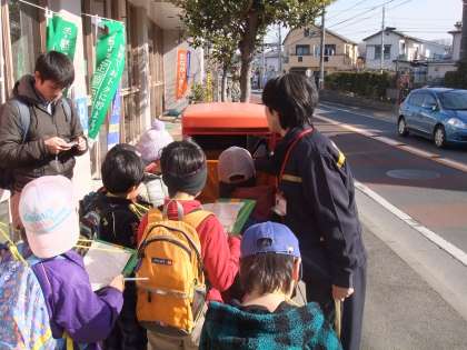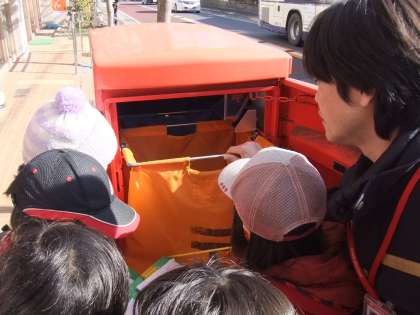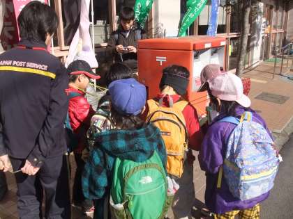 先日、2年生が恩方郵便局に見学に行きました。郵便局で2年生の8名の子供たちは熱心に見学をしていました。その様子を紹介します。
