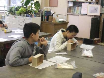 昨日、6年生の図工の授業を参観してきました。6年生はオルゴールを制作するそうです。昨日は、オルゴールのふたのデザインの発表と、オルゴールの側面を『網代彫』をするということでその説明と制作をしていました。出来上がりがとても楽しみですね。
