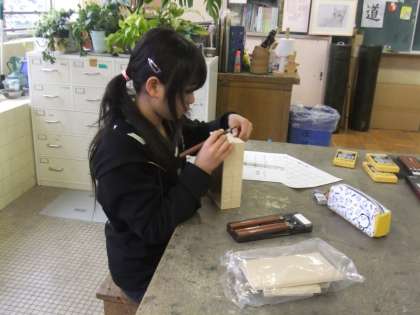 昨日、6年生の図工の授業を参観してきました。6年生はオルゴールを制作するそうです。昨日は、オルゴールのふたのデザインの発表と、オルゴールの側面を『網代彫』をするということでその説明と制作をしていました。出来上がりがとても楽しみですね。