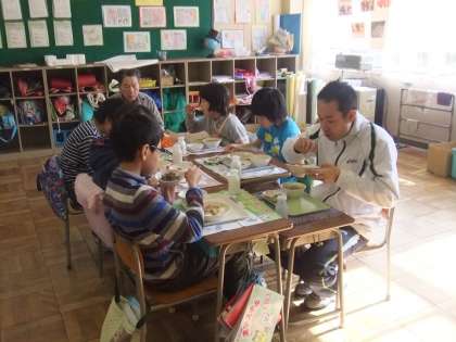 3・4・5年生がゲストティーチャーの方と一緒に楽しくおしゃべりしながら給食を食べました。