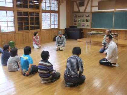 先日5年生が視聴覚室で岡本さん、田代さん、臼井さんの3人のゲストティーチャーの方を迎えて、わら細工を行いました。本校では毎年、自分たちの収穫した稲のわらを使用して、わら細工体験を行っています。わら細工は、自分の足に合わせた、わら草履を中心に作っています。