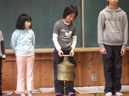昨日の児童集会は本部委員会の子供たちが「ユニセフ集会」をしてくれました。ユニセフとは何か、どういう活動をしているのか、何のために活動をしているのか、どうして募金活動をするのか等とても詳しく調べて発表していました。地雷の模型などもユニセフ協会から借りて、いろいろ説明してくれました。