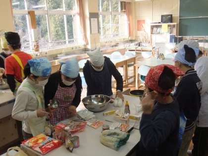 実はこの写真は2学期末の6年生のお楽しみ会の様子です。報告が遅くなりましたが、ホットケーキを一生懸命作っていました。みんなすごく楽しそうでした。私もごちそうになりました。