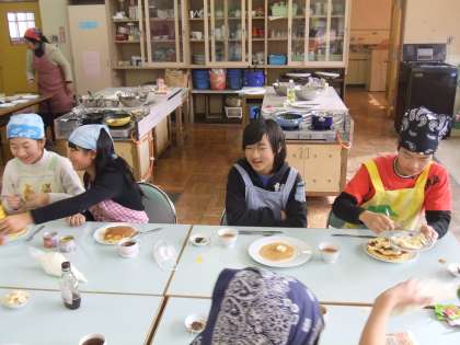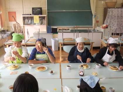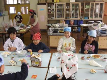 実はこの写真は2学期末の6年生のお楽しみ会の様子です。報告が遅くなりましたが、ホットケーキを一生懸命作っていました。みんなすごく楽しそうでした。私もごちそうになりました