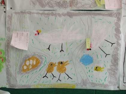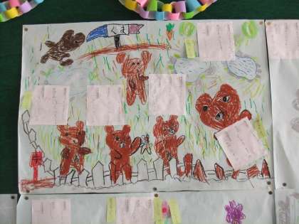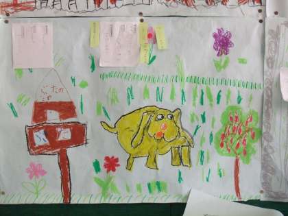 1年生の授業を参観に行ったら、「おはなし動物園」という掲示物があり、思わず見とれてしまいました。