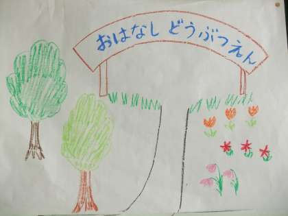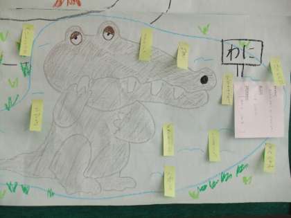 1年生の授業を参観に行ったら、「おはなし動物園」という掲示物があり、思わず見とれてしまいました。