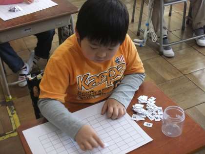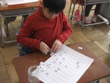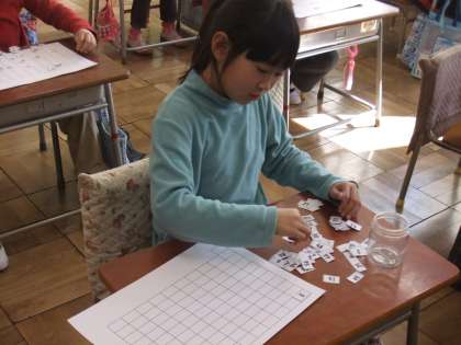 先日、1年生の算数の授業を参観してきました。「おおきなかず」という学習をしていました。1から100までのカードを100までのマス目カードに並べていきます。どうやったら早くカードを並べられるか考えながら並べています。法則性がみつかったかな?
