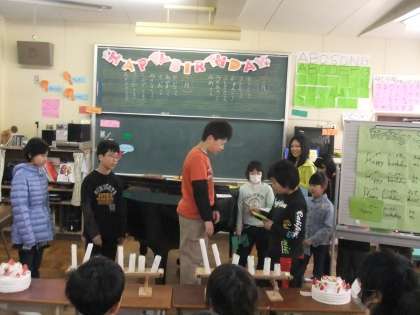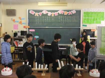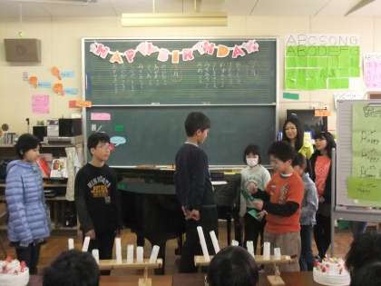 先週の木曜日の集会は2・3月生まれの人のお誕生日集会でした。その様子を紹介します。