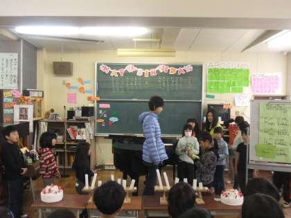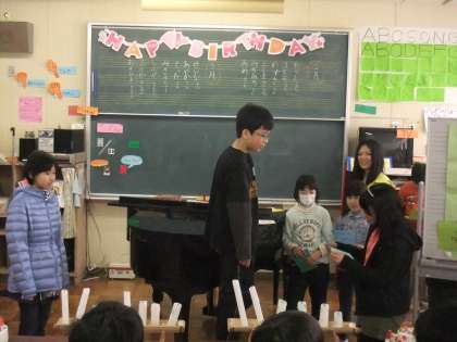 先週の木曜日の集会は2・3月生まれの人のお誕生日集会でした。その様子を紹介します。