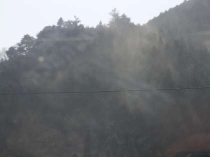 春の訪れその4・・・スギの花粉が・・・ものすごい量です。山火事かと思うくらい校舎の窓から見ていると・・・