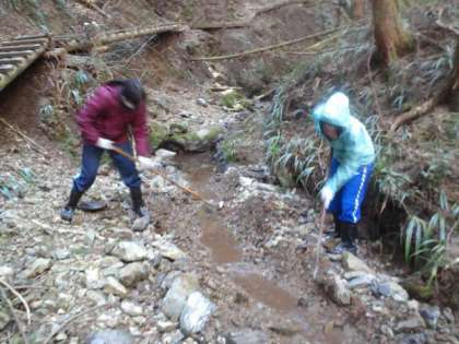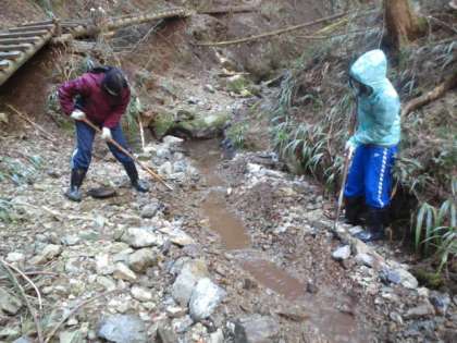 沢水の取水口の清掃