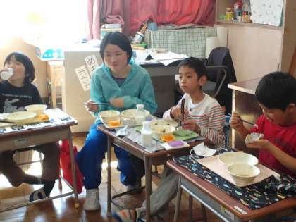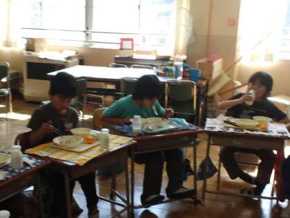 今日、ボランティアの方は2年生と一緒に給食を食べていました。その様子です。