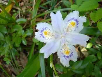 ☆この花は、アヤメのなかまで、やや日がけのしめったところに生えています。この花は3倍体といって(むずかしいので説明はカット)花がさいても実ができない植物です。