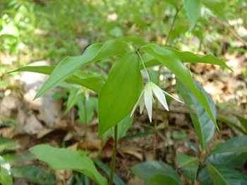 ☆今の季節の雑木林は最高です。いろいろな色の緑の葉が見られ、目にも優しい感じです。そんな中、雑木林の道の足もとに小さなユリがさいています。高さはせいぜい15cmほどです。