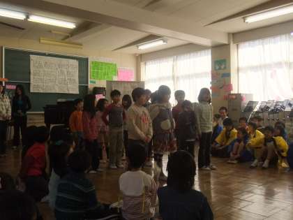 先日、6年生を送る会が音楽室でありました。みんなで「ひまわり」を歌ったり、各学年出し物があり、すごくどの学年も工夫していて立派でした。、6年生の出し物もさすが6年生でした。また、最後に久寿玉もあり素晴らしい6年生を送る会でした。