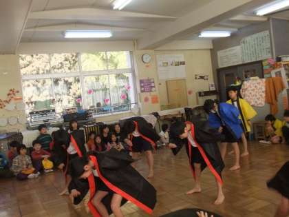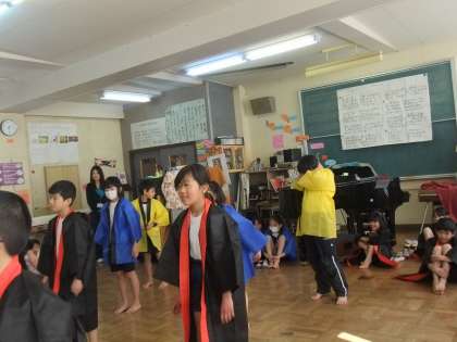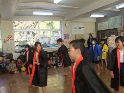 先日、6年生を送る会が音楽室でありました。みんなで「ひまわり」を歌ったり、各学年出し物があり、すごくどの学年も工夫していて立派でした。、6年生の出し物もさすが6年生でした。また、最後に久寿玉もあり素晴らしい6年生を送る会でした。