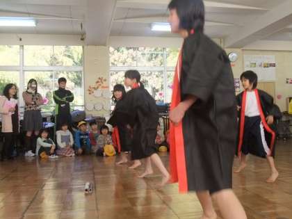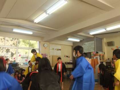 先日、6年生を送る会が音楽室でありました。みんなで「ひまわり」を歌ったり、各学年出し物があり、すごくどの学年も工夫していて立派でした。、6年生の出し物もさすが6年生でした。また、最後に久寿玉もあり素晴らしい6年生を送る会でした。