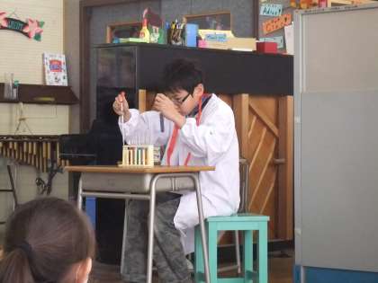 先日、6年生を送る会が音楽室でありました。みんなで「ひまわり」を歌ったり、各学年出し物があり、すごくどの学年も工夫していて立派でした。、6年生の出し物もさすが6年生でした。また、最後に久寿玉もあり素晴らしい6年生を送る会でした。