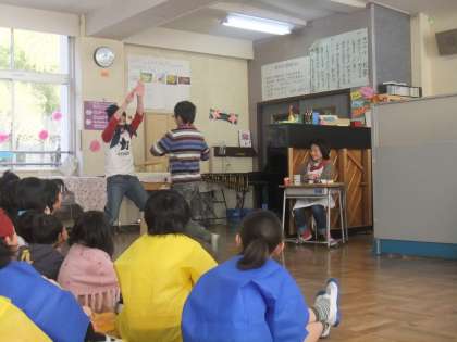 先日、6年生を送る会が音楽室でありました。みんなで「ひまわり」を歌ったり、各学年出し物があり、すごくどの学年も工夫していて立派でした。、6年生の出し物もさすが6年生でした。また、最後に久寿玉もあり素晴らしい6年生を送る会でした。