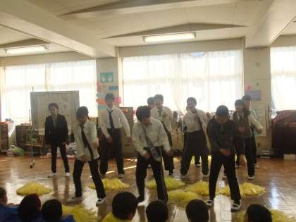 先日、6年生を送る会が音楽室でありました。みんなで「ひまわり」を歌ったり、各学年出し物があり、すごくどの学年も工夫していて立派でした。、6年生の出し物もさすが6年生でした。また、最後に久寿玉もあり素晴らしい6年生を送る会でした。