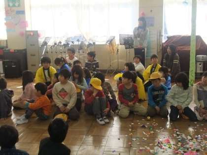先日、6年生を送る会が音楽室でありました。みんなで「ひまわり」を歌ったり、各学年出し物があり、すごくどの学年も工夫していて立派でした。、6年生の出し物もさすが6年生でした。また、最後に久寿玉もあり素晴らしい6年生を送る会でした。