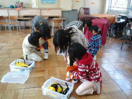 先日、社会福祉協議会の方から高齢者疑似体験のセットをお借りして、4年生は高齢者字義体験を行いました。その様子をお知らせします。