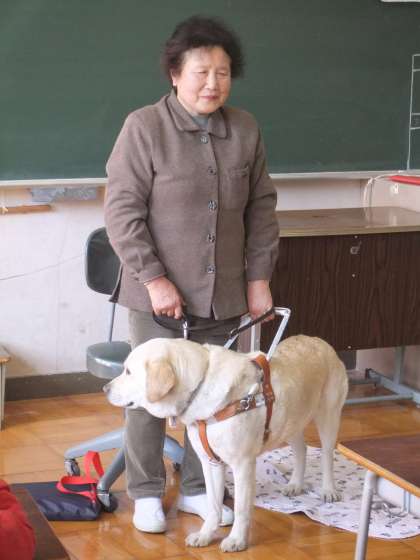 今回の福祉学習の紹介は、昨年度も来てくださいましたが、盲導犬と暮らす龍崎さんの話と点字体験、アイマスク体験を行いました。