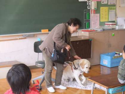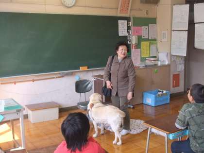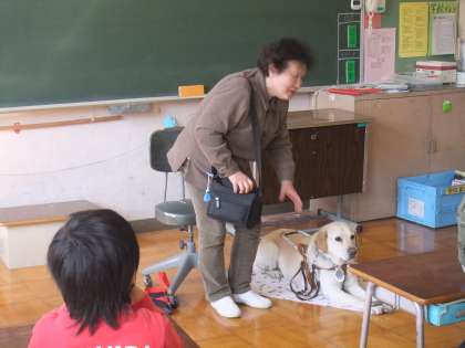 今回の福祉学習の紹介は、昨年度も来てくださいましたが、盲導犬と暮らす龍崎さんの話と点字体験、アイマスク体験を行いました。