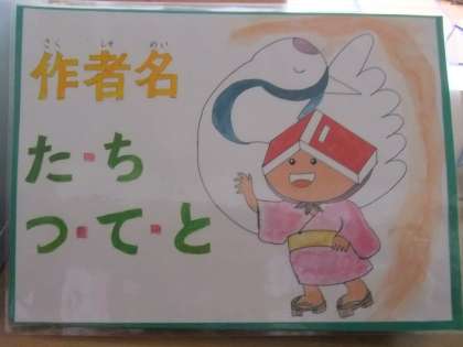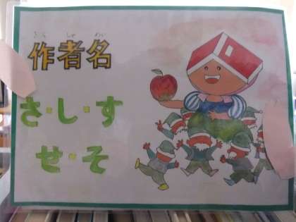 一昨年度より本校の図工専科の教員が司書教諭でもあり、いろいろ学校図書館を図書ボランティアの方々と協力しながらきれいにしてくれています。その中で、「本ずきんちゃん」というオリジナルのキャラクターを自作で書いて図書室のあちらこちらに掲示されています。