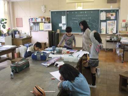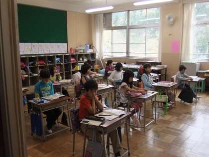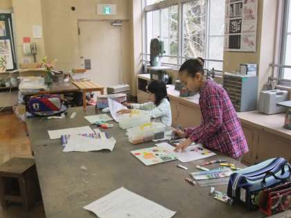 今日の授業の様子を見てきました。2年生の図工の授業ではお花を描いていました。4年生はポスターを描いていました。