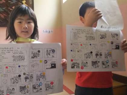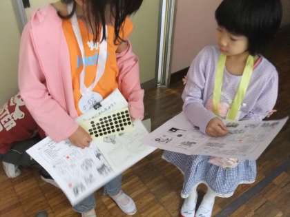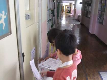 昨日、1・2年生が学校内探検をしていました。2年生が1年生をリードしながら、学校内を案内していました。